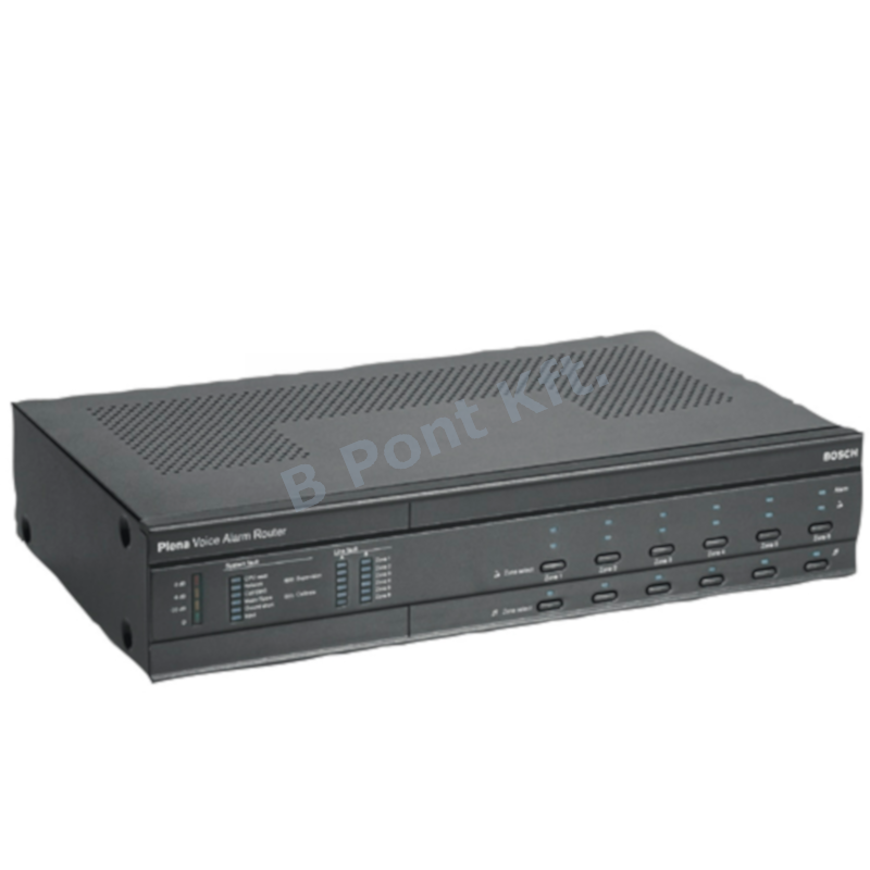 A(z) LBB 1990/00 Vészhangosítás vezérlő egysége a Plena vészhangosítási rendszer lelke. Ez a(z) Plena vészhangosítási rendszer alapja, és minden lényegesfunkcióval rendelkezik, hogy megfeleljen az EN 54-16 és az EN 60849 szabványoknak, beleértve a teljes rendszerfelügyeletet, a hangszóró vonalimpedanciájának felügyeletét, egy előlapon lévő felügyelt vészhelyzeti mikrofont és egy felügyeltüzenetkezelőt. Az üzenetek egyesítésével jóval hatékonyabb formában lehet használni az előre rögzített közleményeket és evakuálási üzeneteket. A vezérlő legfeljebb hatzónás önálló rendszerként használható, vagy további hatzónás zónabővítőkkel legfeljebb 120 zónáig bővíthető. Nyolc bemondópultot lehet csatlakoztatni. A csatlakozások szabványos RJ45csatlakozókon és árnyékolt CAT-5 kábelen keresztüljönnek létre. Egy beépített 240 W-os erősítő biztosítja a vészhelyzeti-bemondó csatorna és a háttérzene tápellátását. A kétcsatornás működés biztosításához további erősítők adhatók hozzá.
